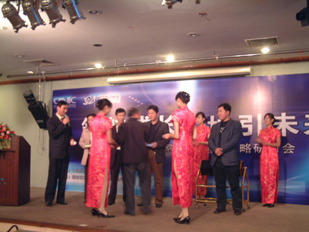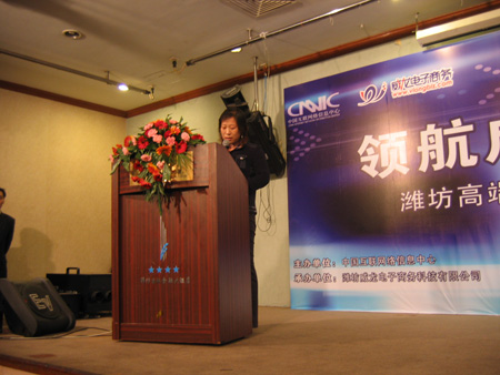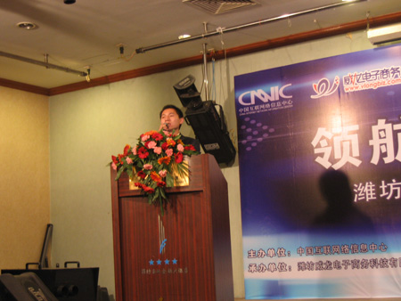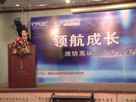 中國互聯(lián)網(wǎng)絡(luò)信息中心和威龍電子商務(wù)科技有限公司主辦的“領(lǐng)航貿(mào)易 “址”引財富——濰坊高端企業(yè)家網(wǎng)絡(luò)貿(mào)易戰(zhàn)略研討會”,于10月23日在濰坊金融國際大廈成功舉行。中國互聯(lián)網(wǎng)絡(luò)信息中心、威龍電子商務(wù)及濰坊諸多知名企業(yè)的領(lǐng)導(dǎo)近三百人出席了本次會議。會議就如何借助中文通用網(wǎng)址保護網(wǎng)上品牌、推廣企業(yè)網(wǎng)站進行了深入的探討,同時,眾多企業(yè)負責(zé)人現(xiàn)場對自己的行業(yè)、產(chǎn)品及公司名稱等相關(guān)關(guān)鍵詞進行了及時保護。并有許多企業(yè)代表借此機會紛紛上臺對威龍?zhí)峁┑姆?wù)提出了褒獎。