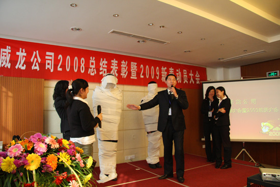 本次會議主要針對在08年度工作表現(xiàn)突出的員工做出表彰。針對各部門工作的不同,分別評選出以下獎項:08年度新增業(yè)績前三名、部門新增業(yè)績獎、客戶維護獎、技術骨干獎、后勤服務獎五個獎項。同時,為鼓勵獲獎員工公司為他們準備了豐厚的獎品:電冰箱、數(shù)碼相機、液晶顯示器、微波爐、吸油煙機等。這不僅是公司對獲獎員工工作的肯定和認可,更是對他們來年工作的一個激勵。
